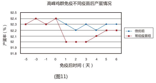 產(chǎn)蛋雞產(chǎn)蛋高峰時(shí)免疫倍優(yōu)?系列產(chǎn)品,產(chǎn)蛋率基本無影響(圖11)。