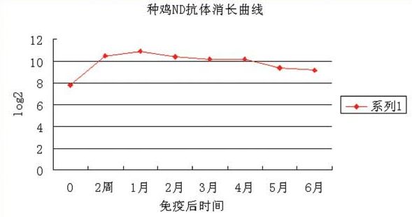 某種雞場(chǎng)注射華南農(nóng)大ND+H9(精品)油苗,ND抗體消長(zhǎng)規(guī)律