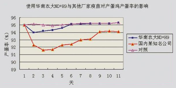 某蛋雞場(chǎng)注射華南農(nóng)大ND+H9(精品)油苗與其他廠家疫苗對(duì)產(chǎn)蛋率的影響(品種:海蘭褐)