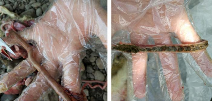 GPV、MDPV感染鵝、番鴨之后,基本臨床表現(xiàn)無太大差異,都會出現(xiàn)呼吸道癥狀(氣喘)、胰腺出血或壞死、腹瀉、卡他性纖維素性腸炎導(dǎo)致栓塞呈“臘腸樣”病變。主要危害7-21日齡雛鴨鵝,發(fā)病越早死亡越嚴(yán)重。近年來30日齡以上甚至某些200日齡以上種鵝群體也有發(fā)病的報道。